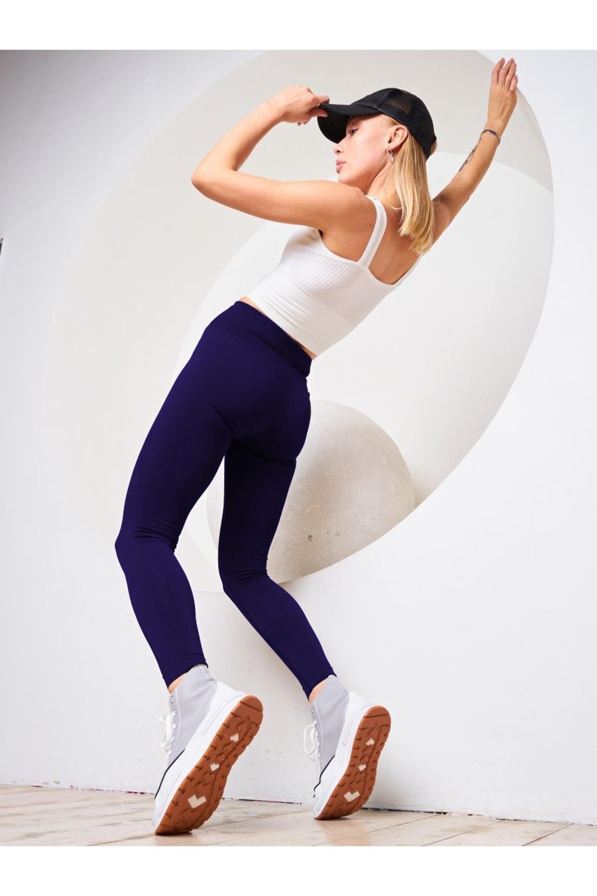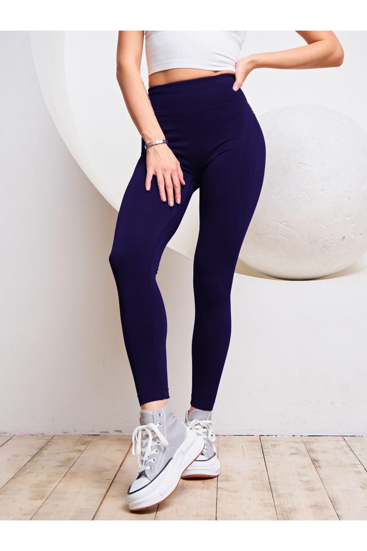 Alnus Örme Model Spor Taytı Sıkılaştırıcı Etkili Yüsek Bel Düz Tayt Lacivert Renk
