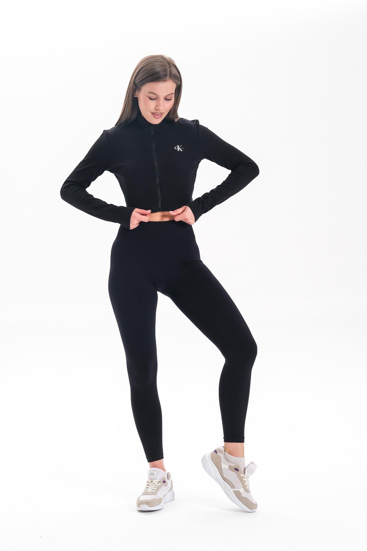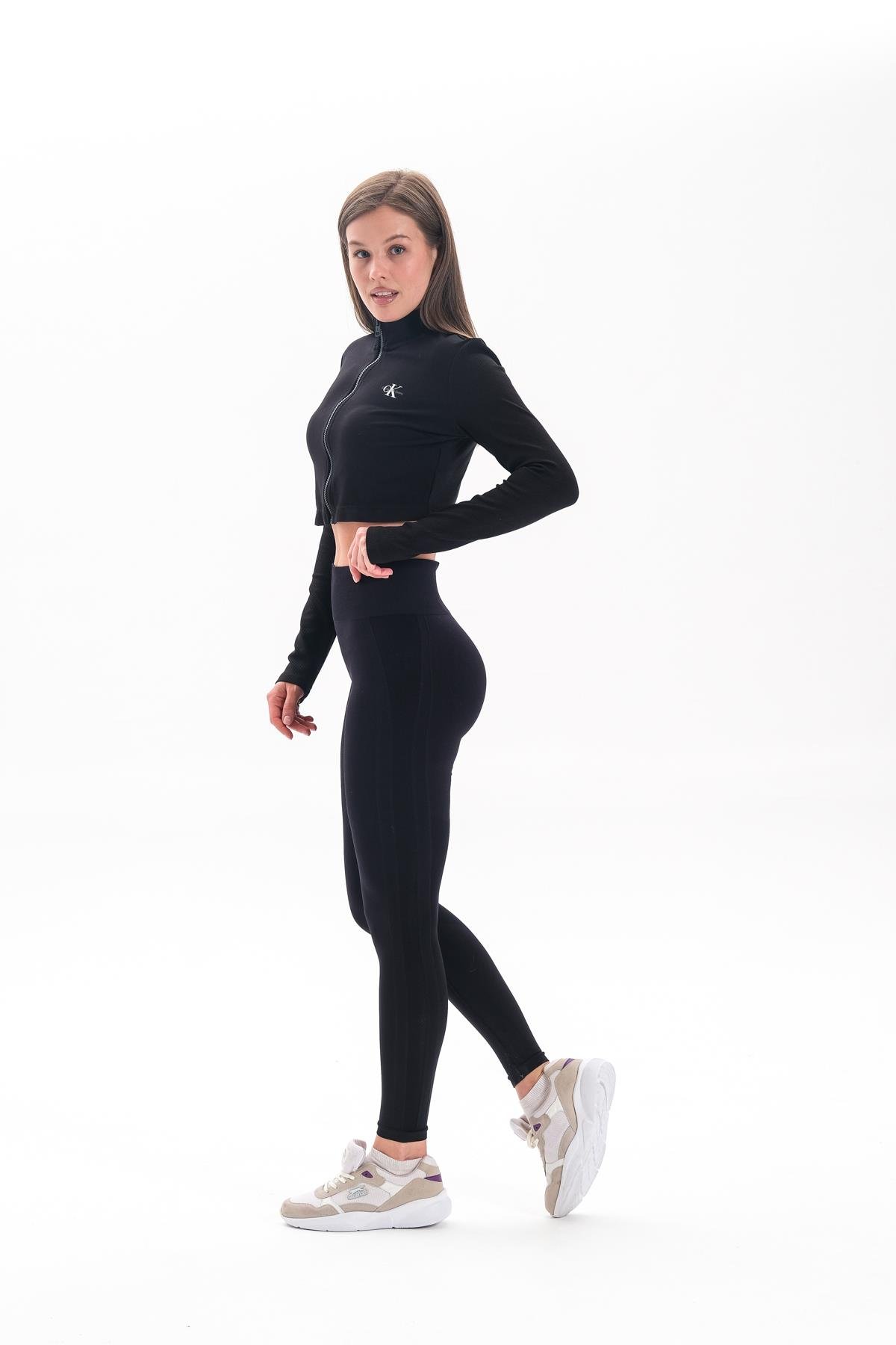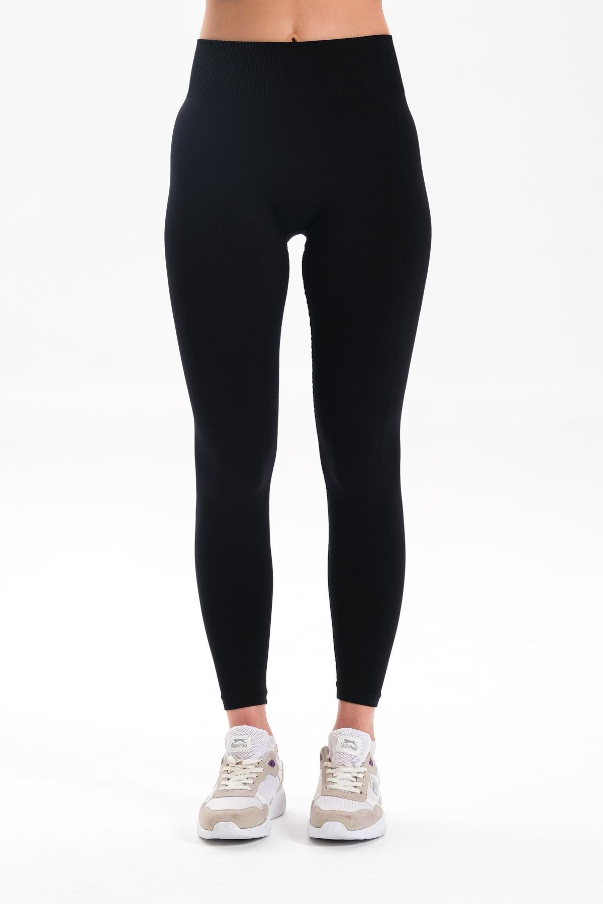 Alnus Örme Model Spor Taytı Sıkılaştırıcı Etkili Yüsek Bel Düz Tayt Siyah Renk