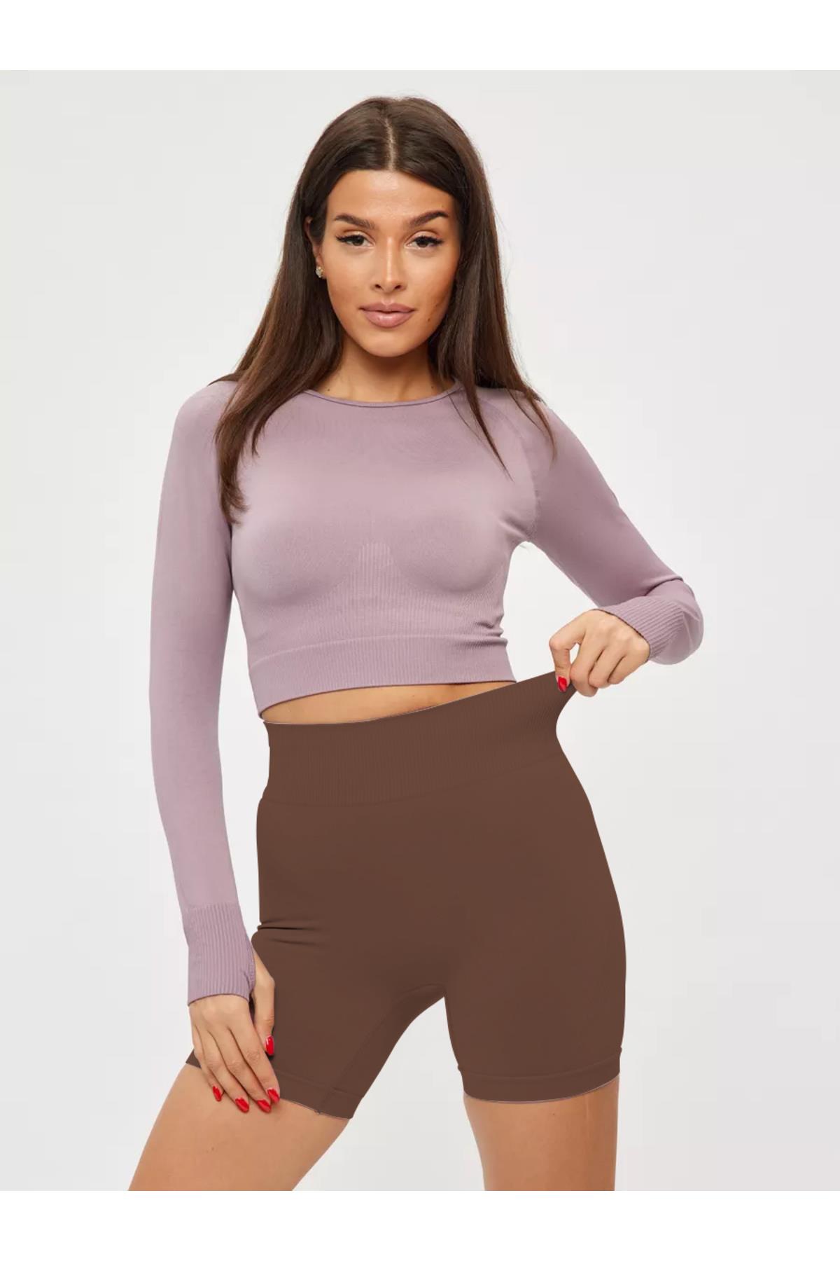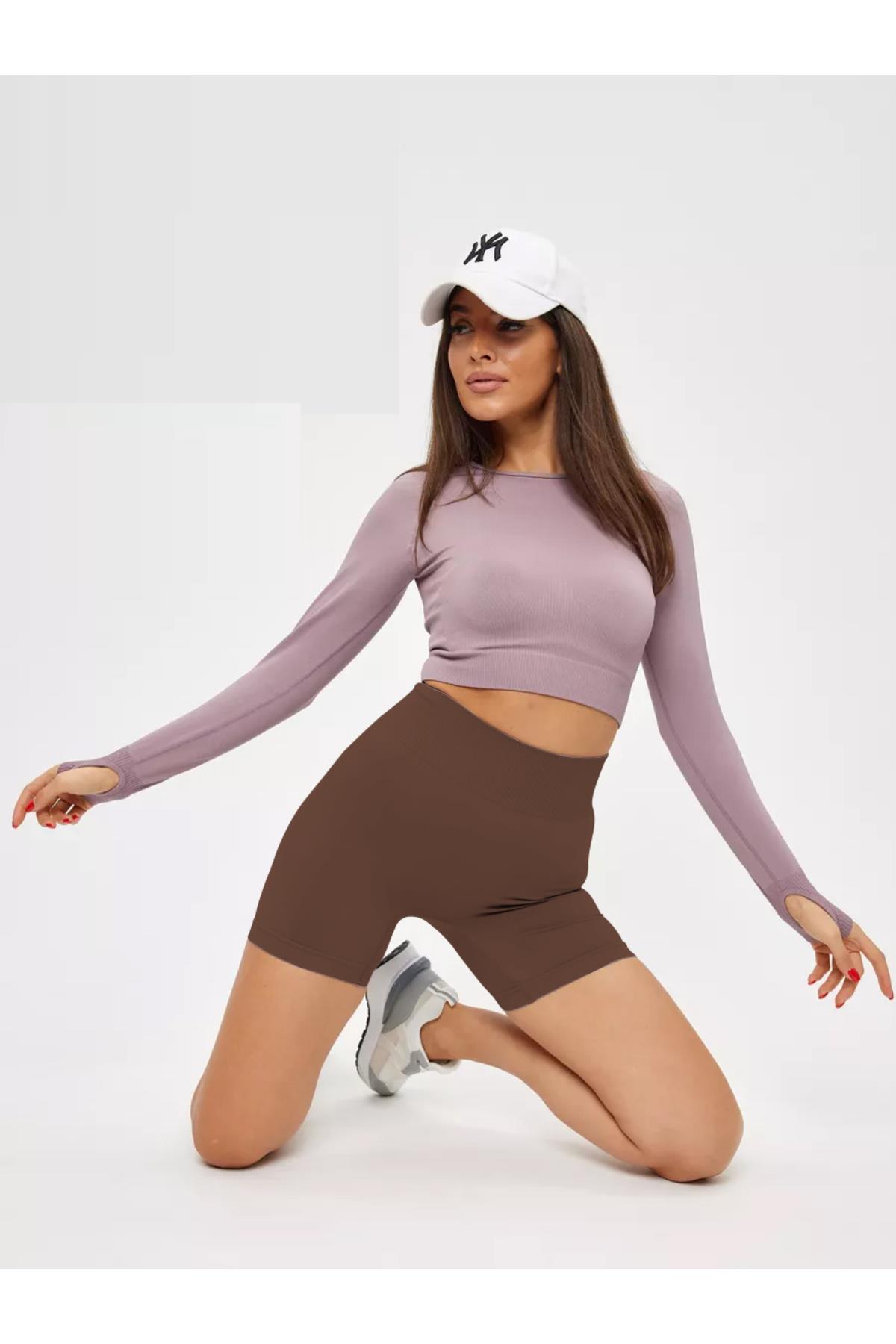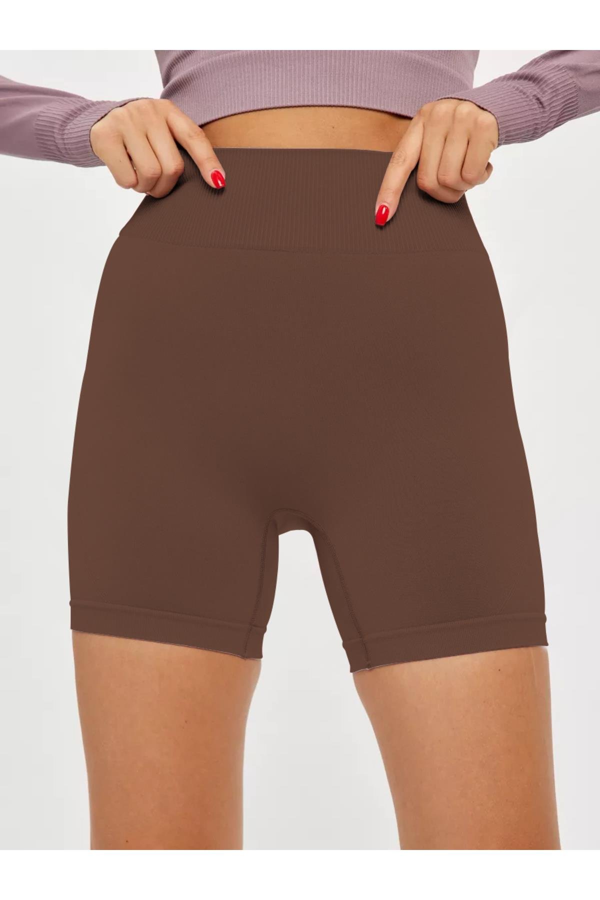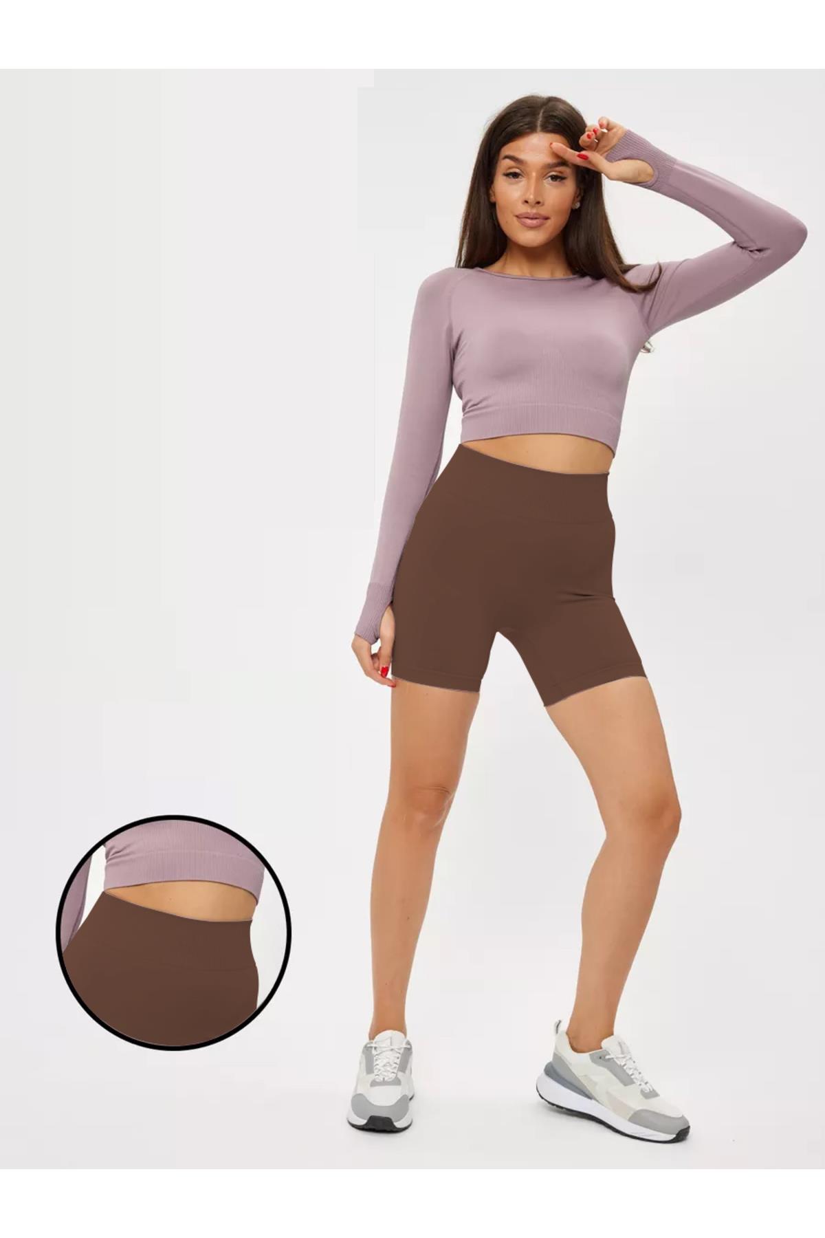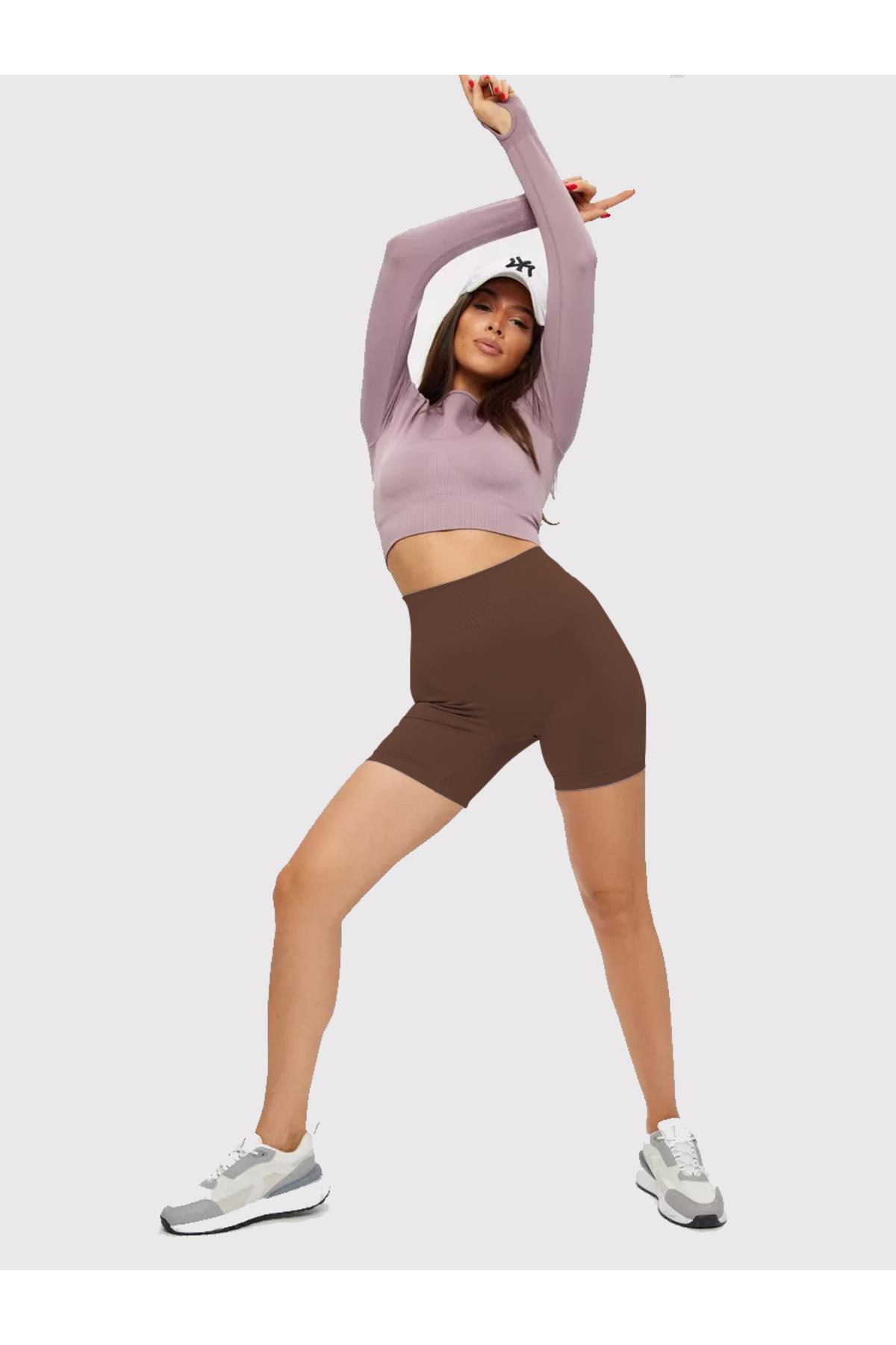 Jerovin Model Seamless Toparlayıcı Biker Push Up Etkili Kısa Şort Kahve Renk