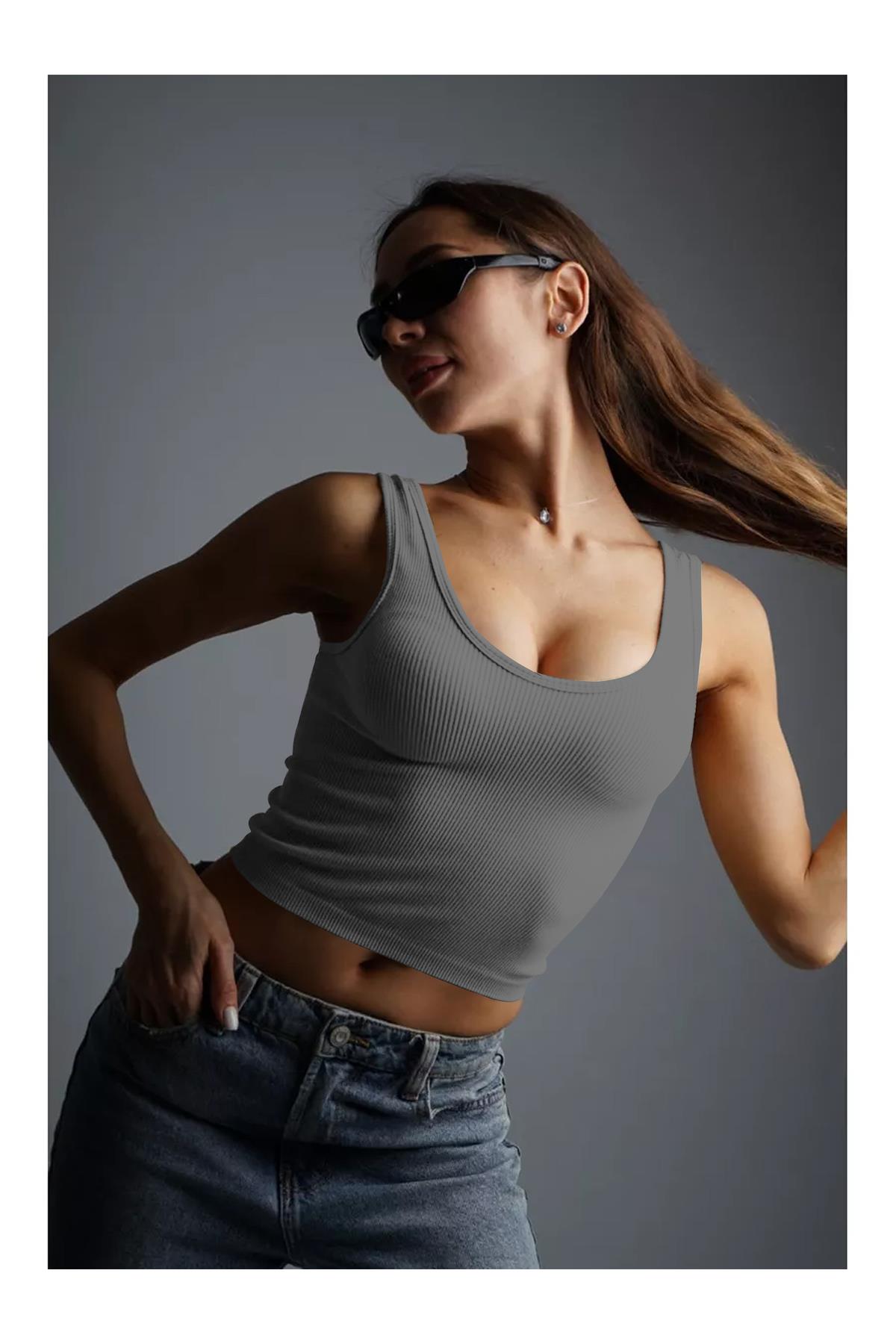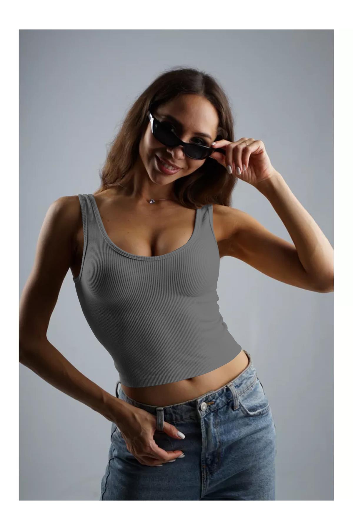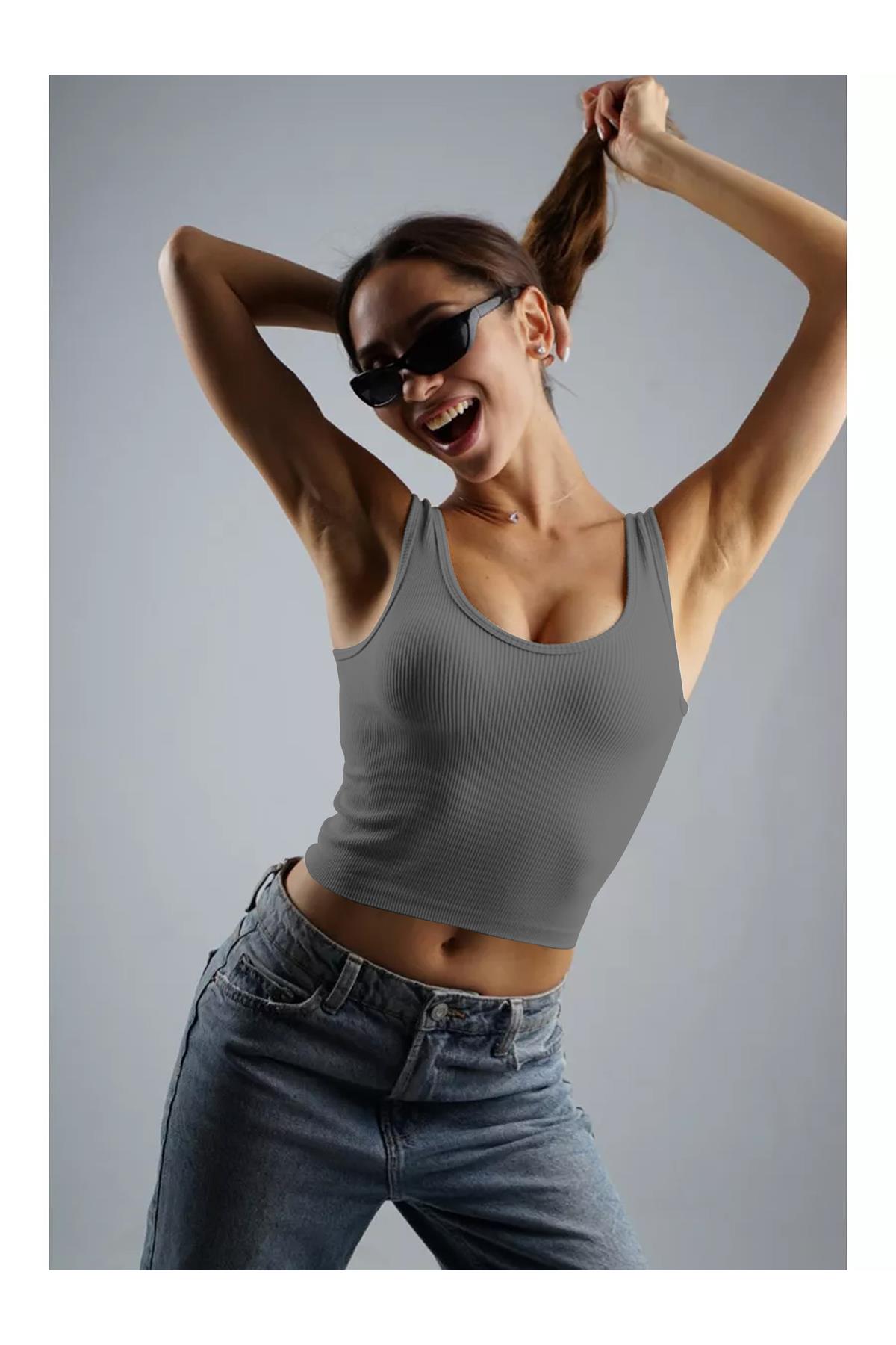 Marsala Model Sıkılaştırıcı Biker Crop Örme Ve Seamless Model Gri Renk