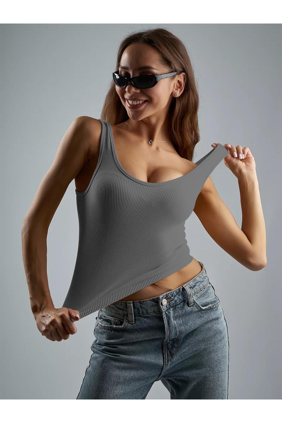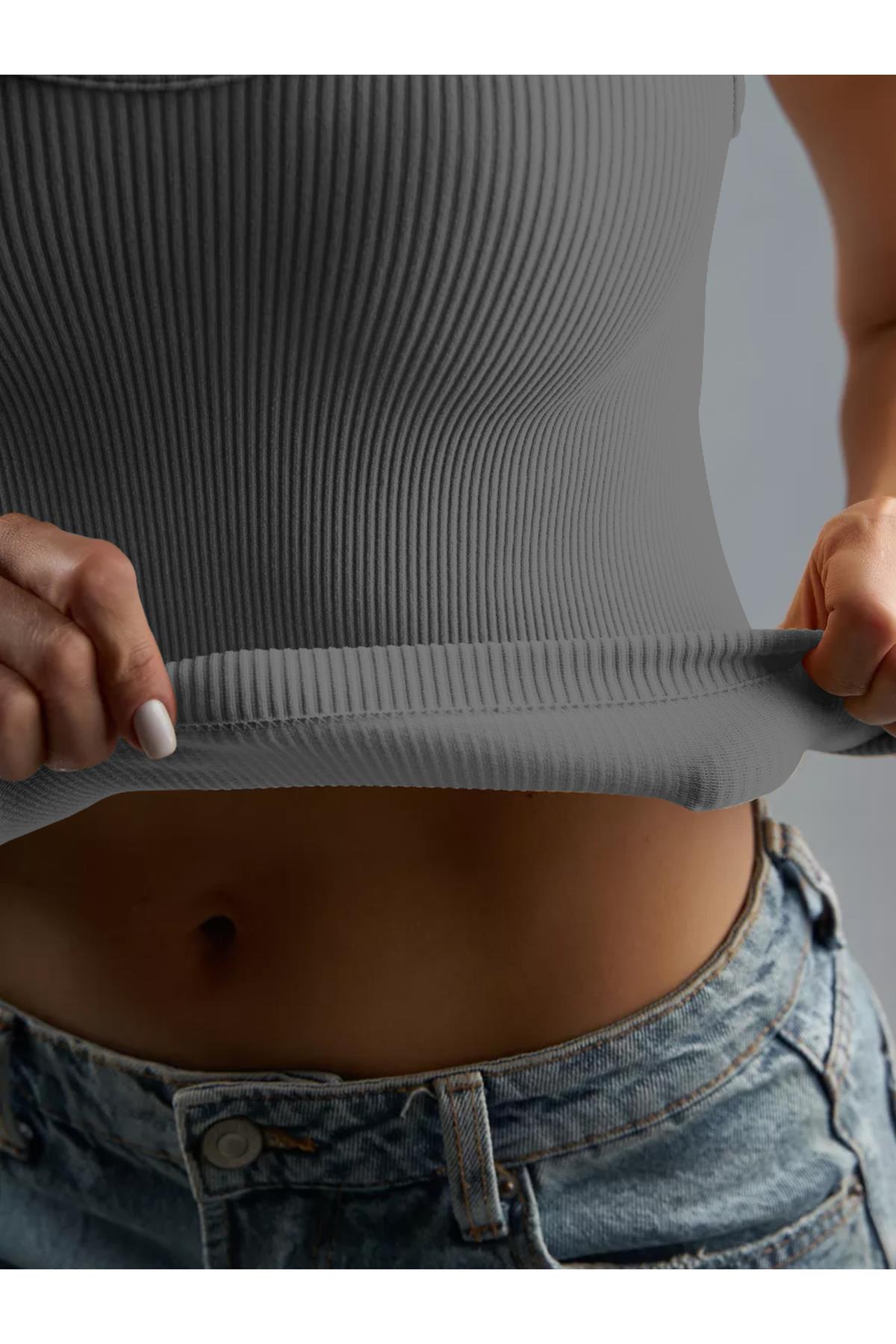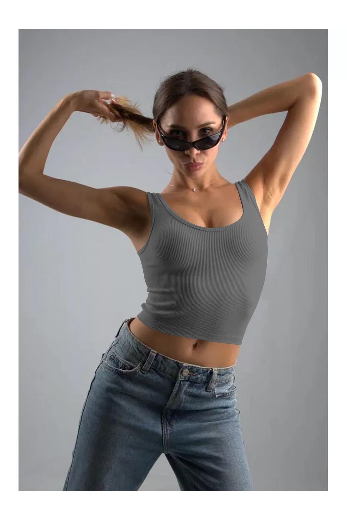 Marsala Model Sıkılaştırıcı Biker Crop Örme Ve Seamless Model Gri Renk