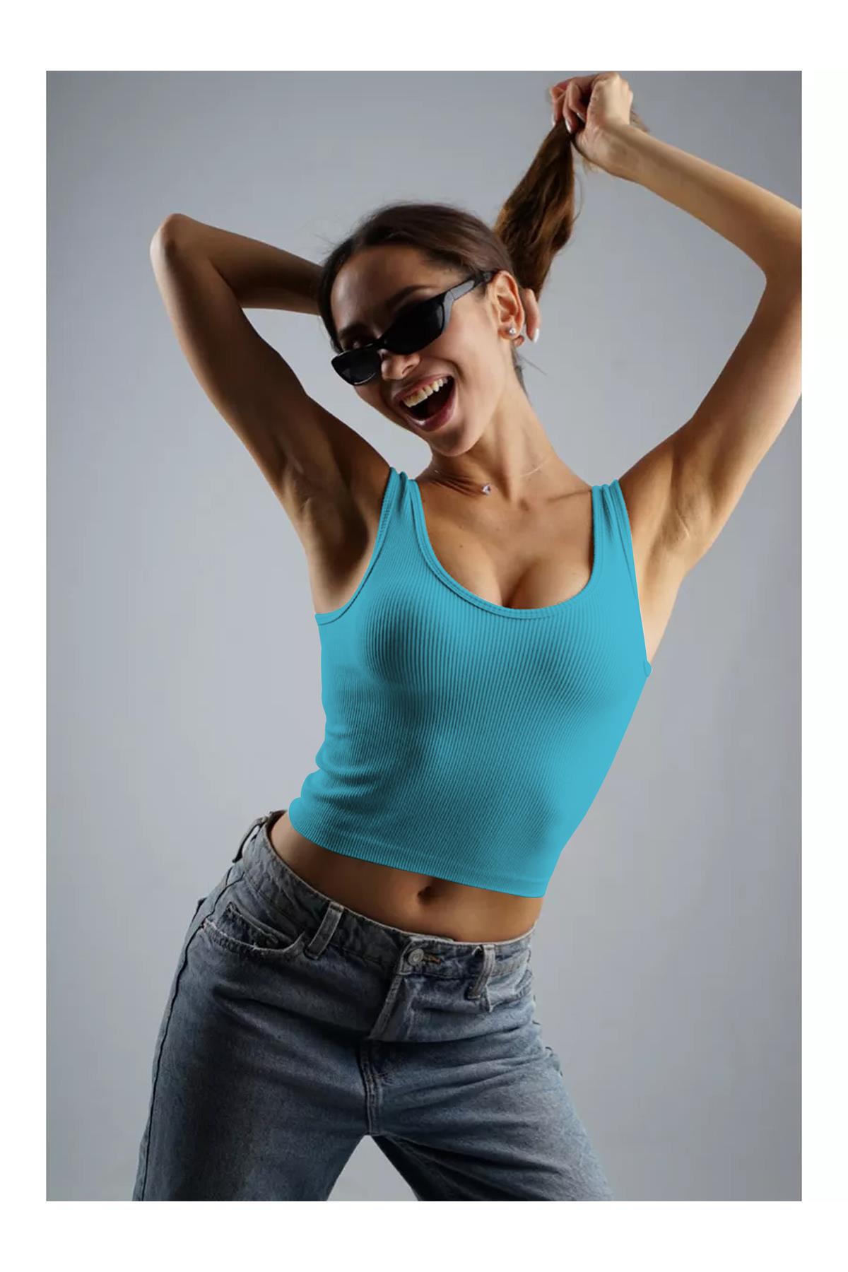 Marsala Model Sıkılaştırıcı Biker Crop Örme Ve Seamless Model Grimavi Renk