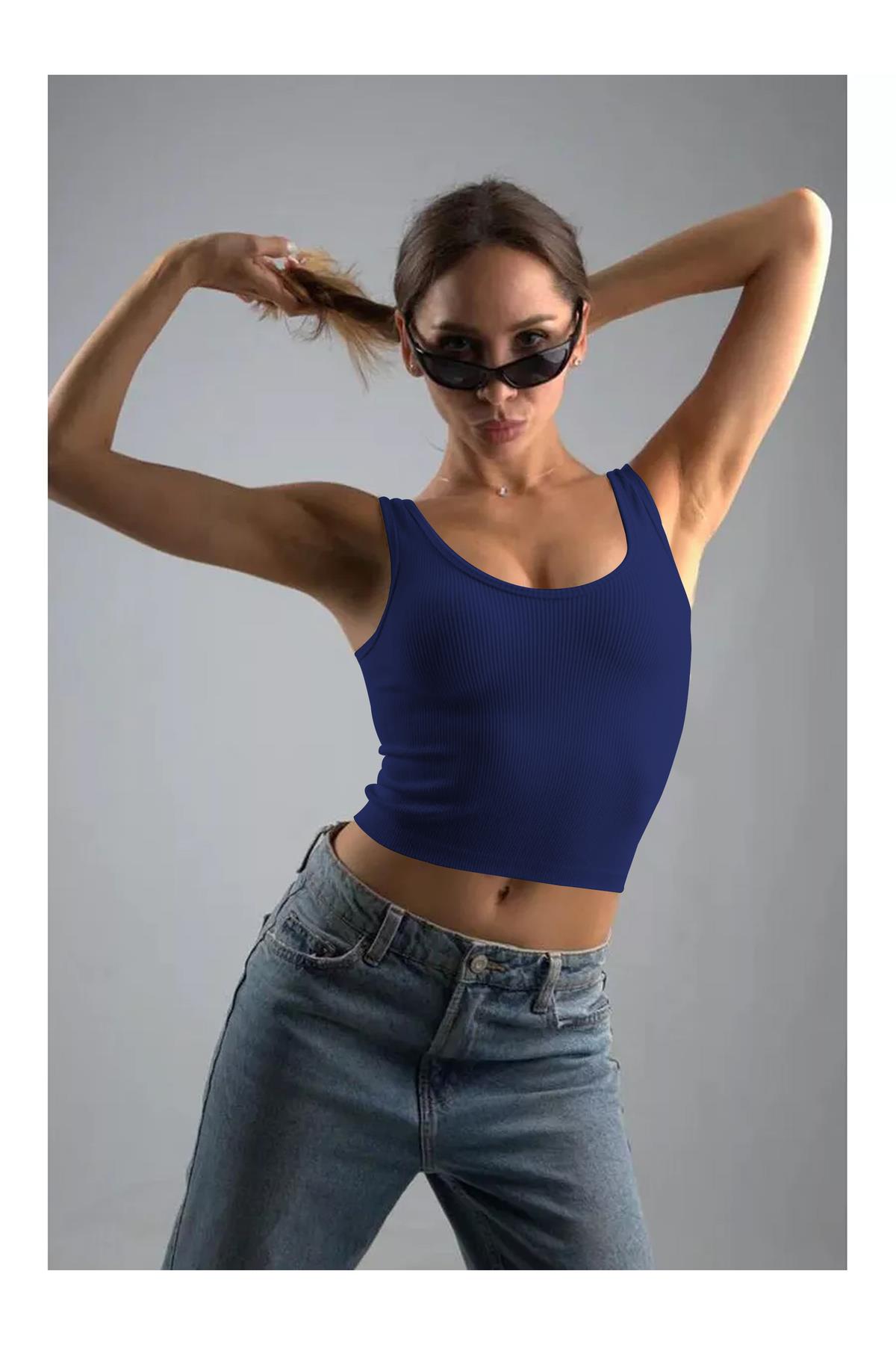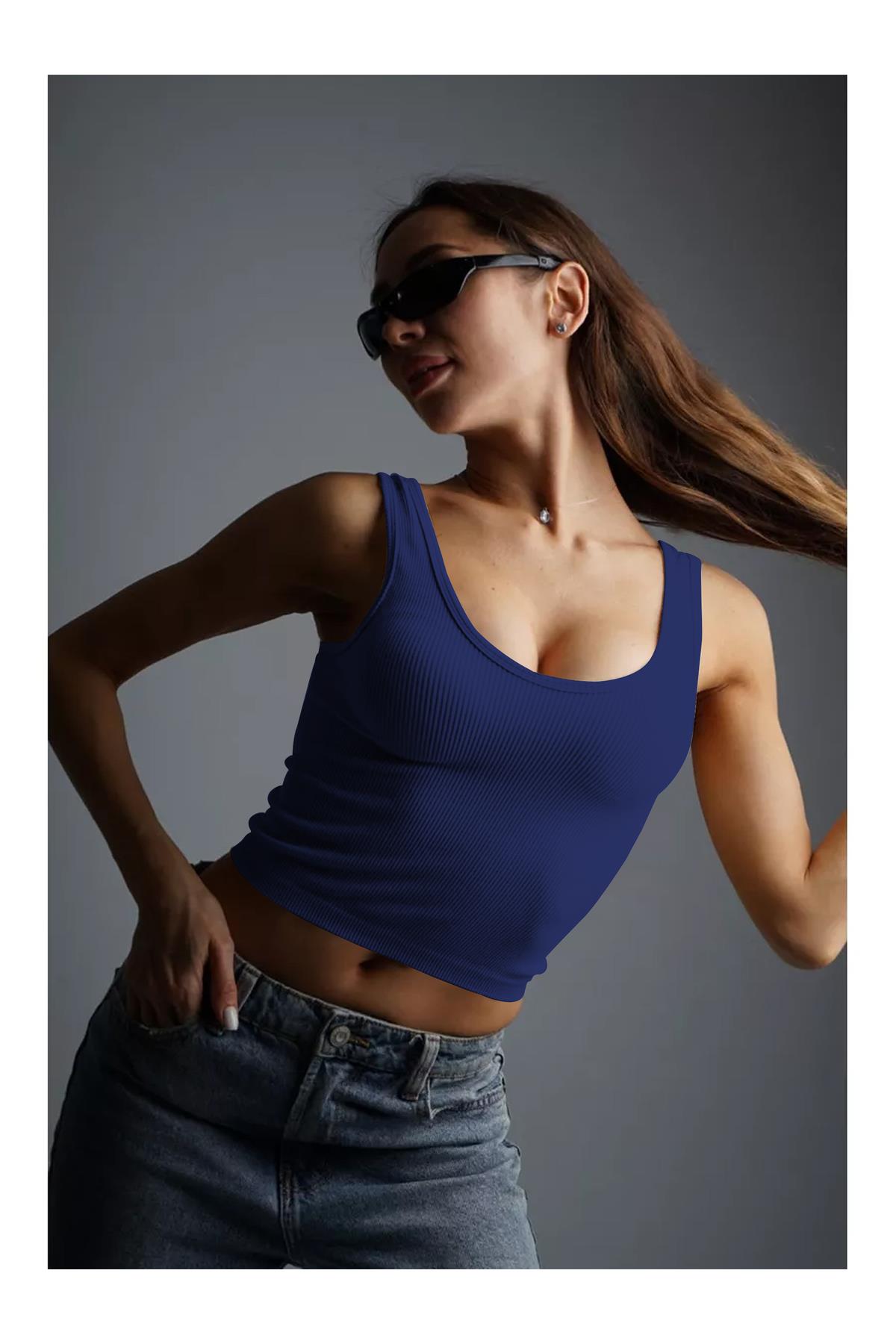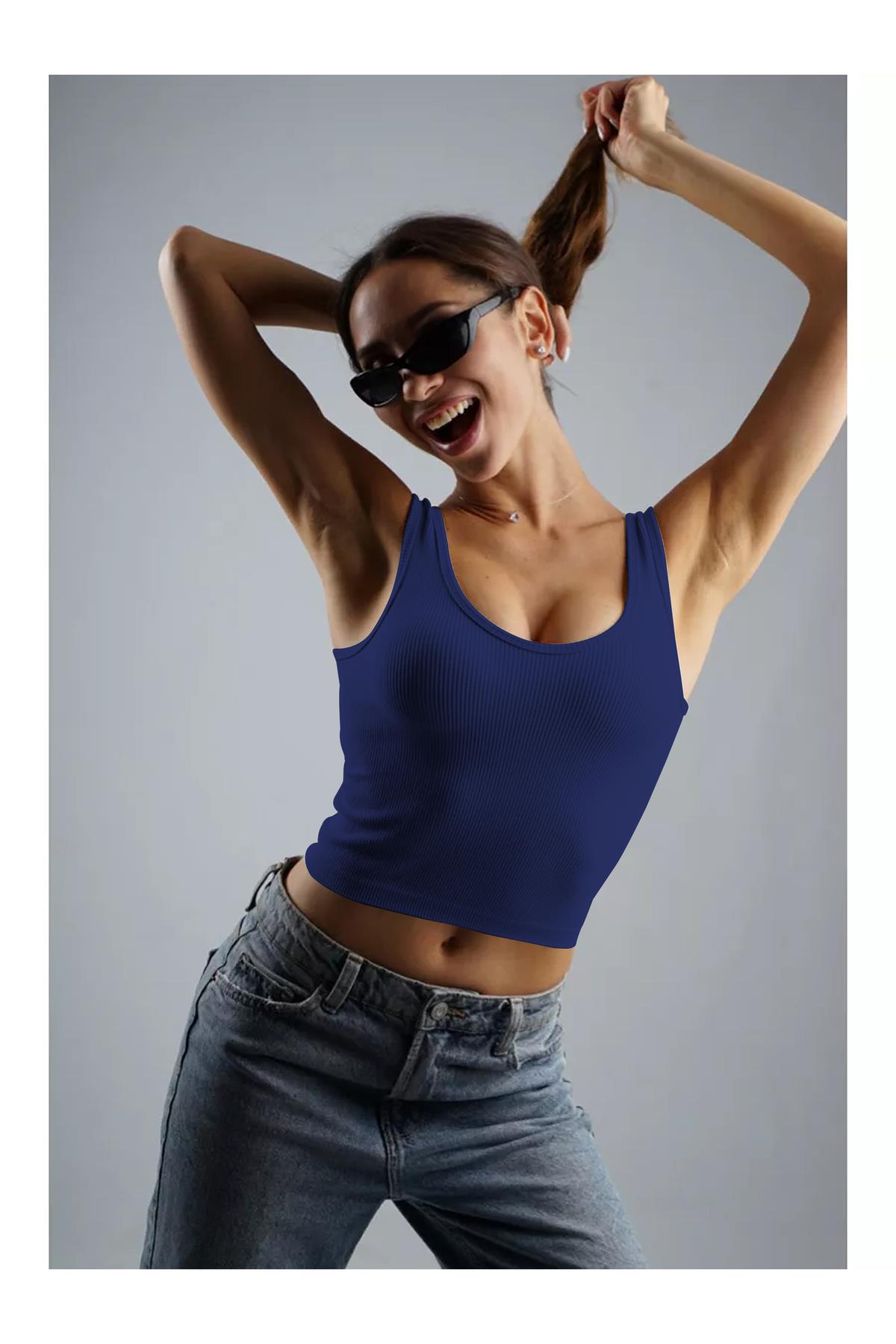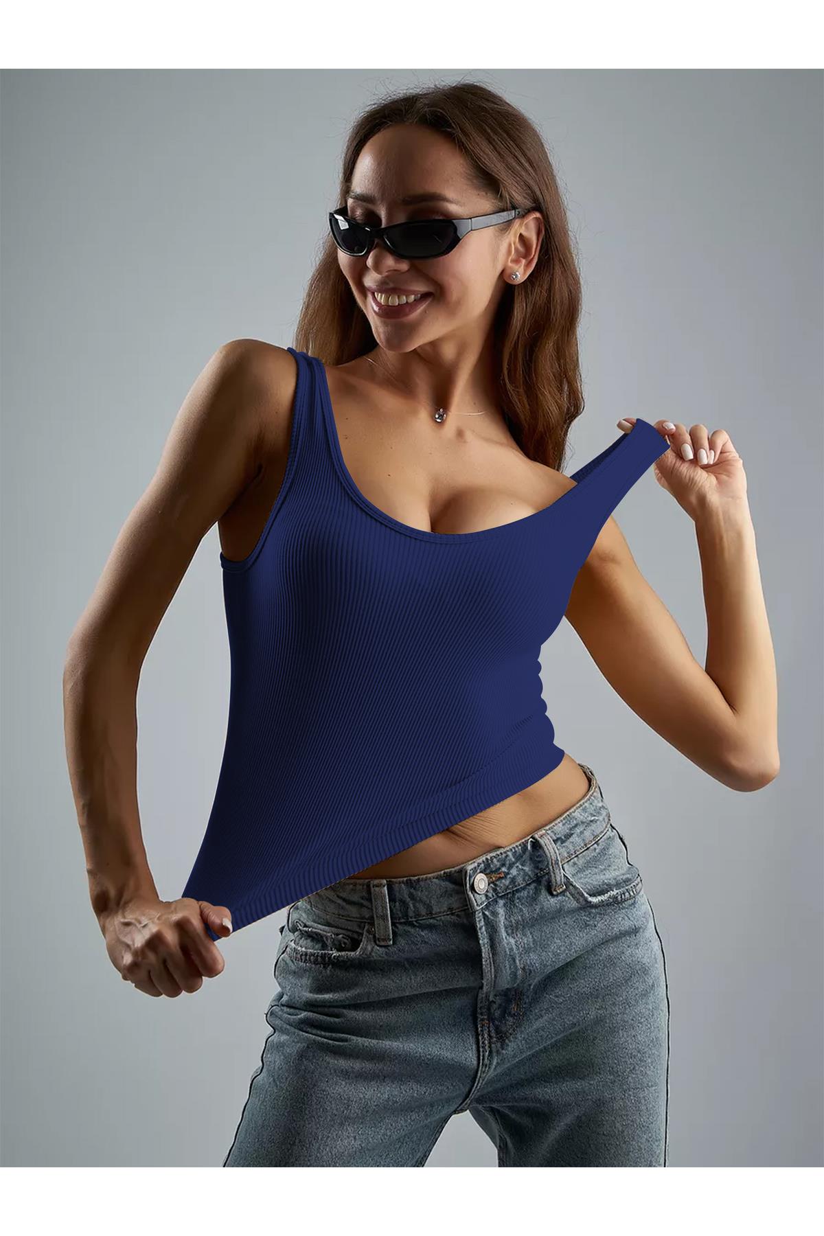 Marsala Model Sıkılaştırıcı Biker Crop Örme Ve Seamless Model Lacivert Renk