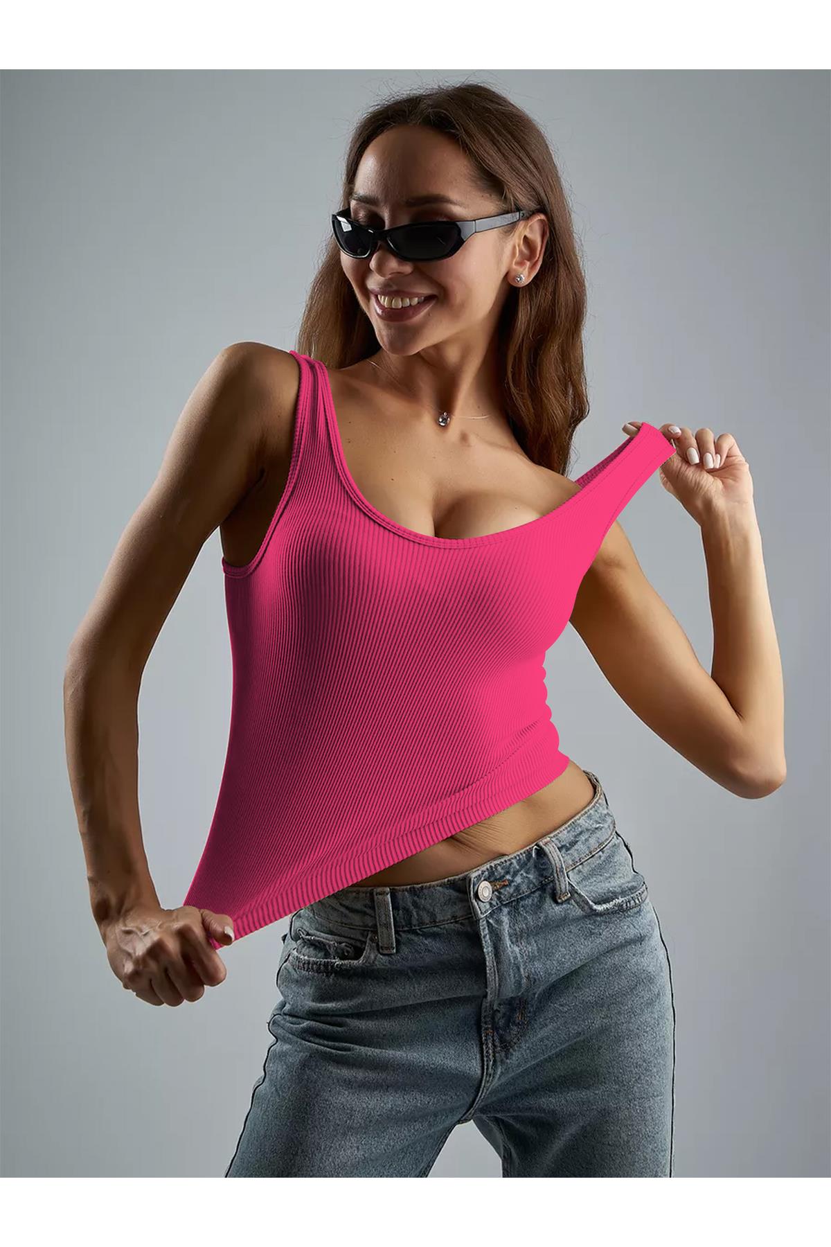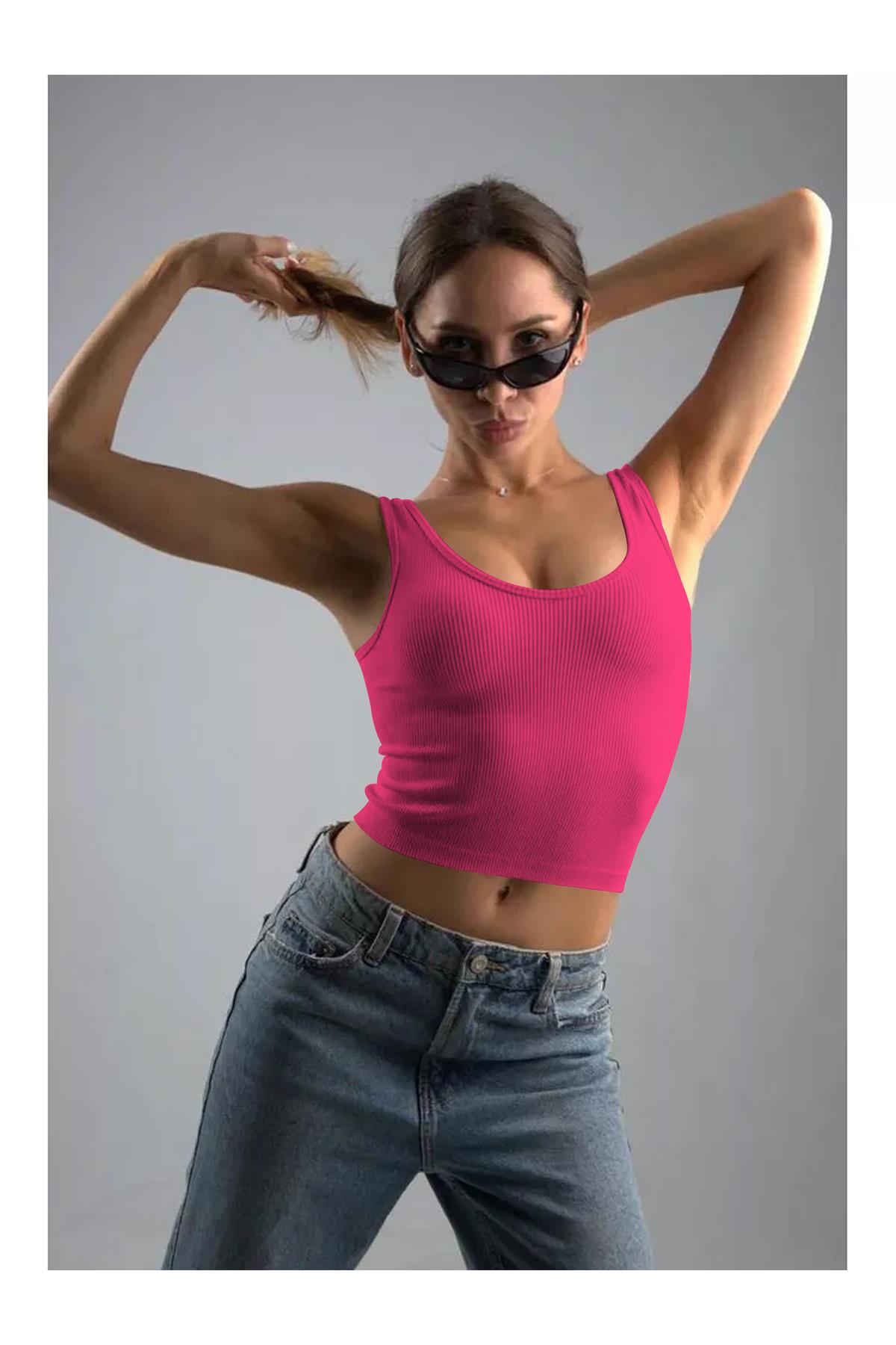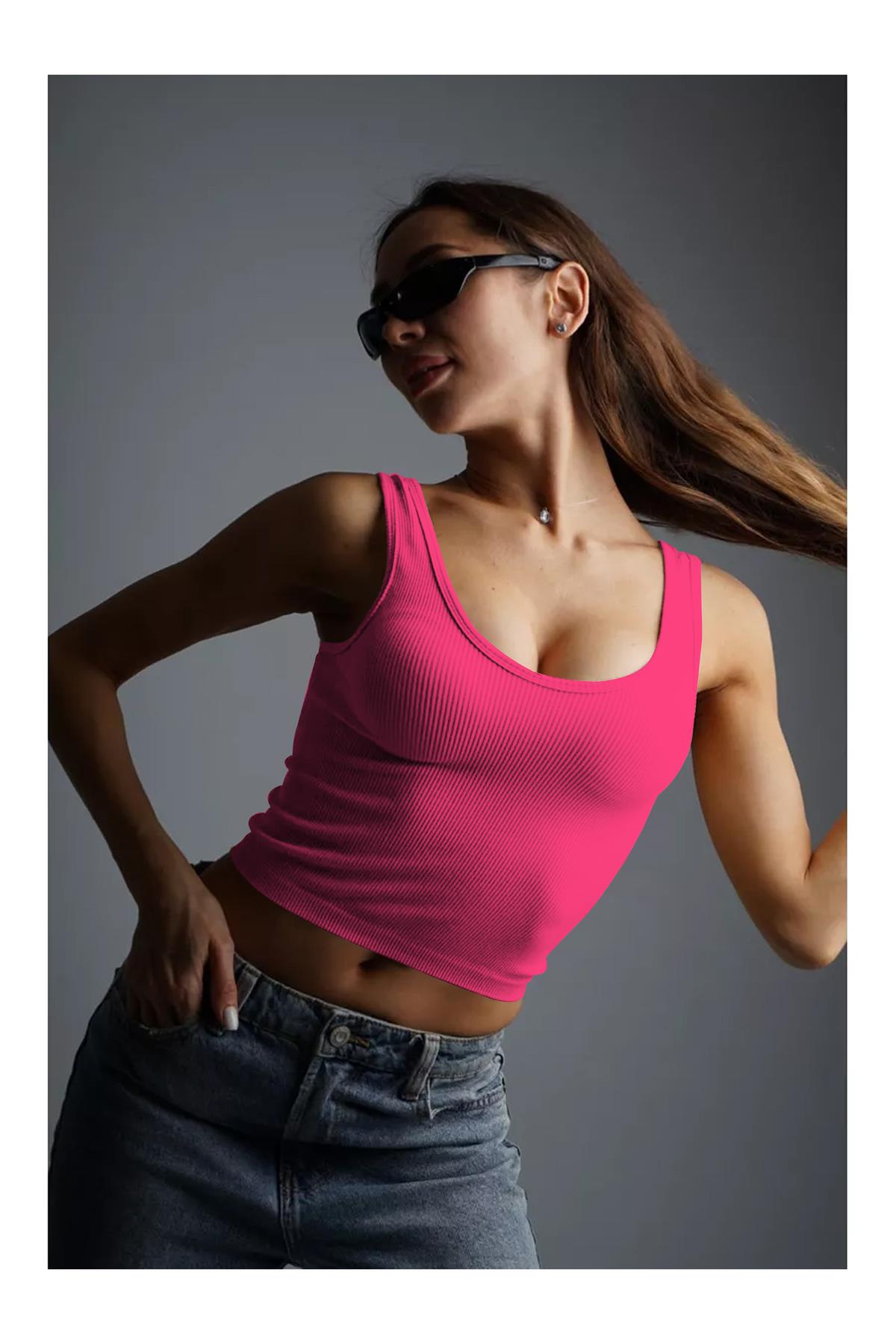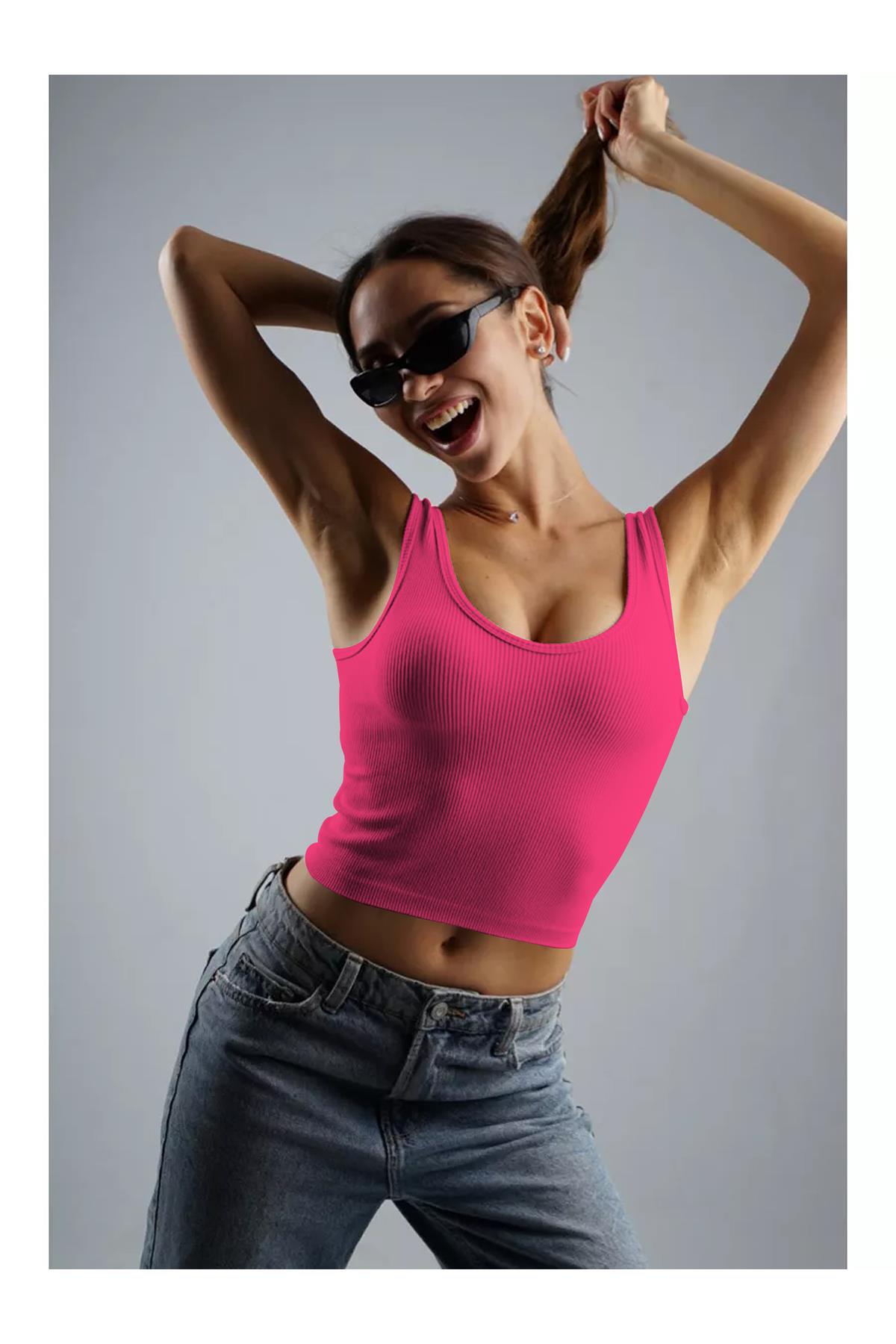 Marsala Model Sıkılaştırıcı Biker Crop Örme Ve Seamless Model Pembe Renk